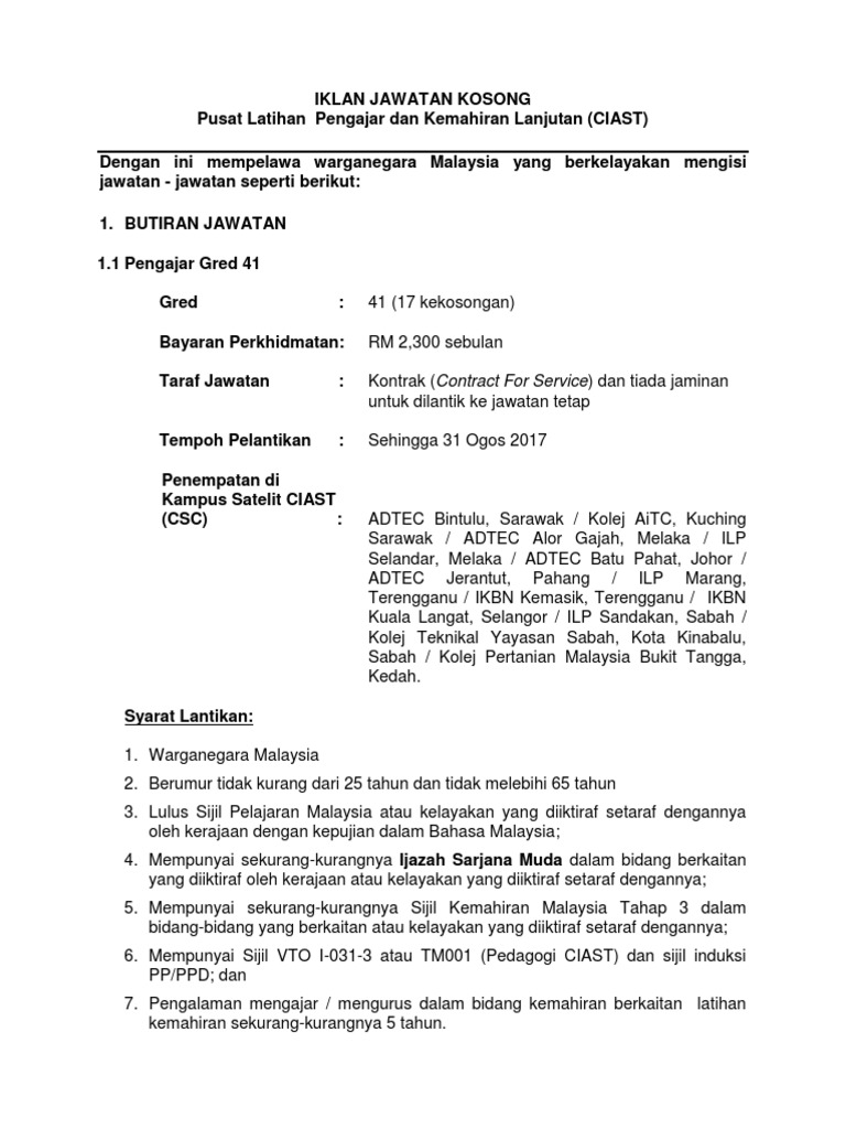Lebih 10,000 jawatan kosong sektor kerajaan terbuka untuk diisi sekarang bermula dari gred 19 hingga ke gred 41. Keterangan lanjut jawatan kosong di sini. Klik pautan iklan jawatan di bawah dan rujuk maklumat permohonan, syarat dan tarikh tutup permohonan. Pengajar gred 29 ( 15 kekosongan) gaji ditawarkan rm1600/bulan. Tenaga pengajar, tutor, pegawai penilai (pp) / tenaga pengajar elektrik skm tahap 3 and more on indeed.com.